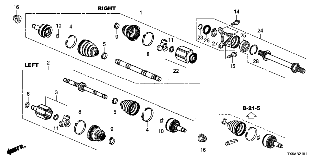 Acura ILX parts. Parts like Driveshaft - Half Shaft are shipped directly from authorized Acura dealers and backed by the manufacturer's warranty. Parts fit for the following vehicle options. Body & Trim: 4 Door. Emission & Transmission: 8-Speed DCT.
